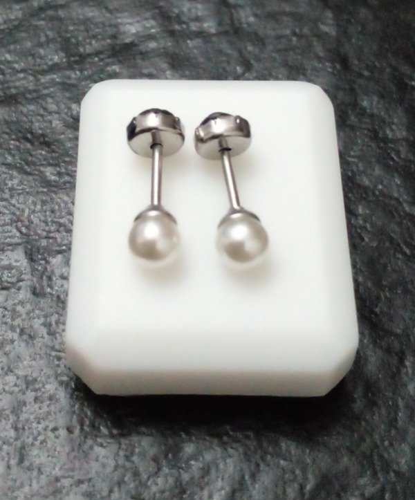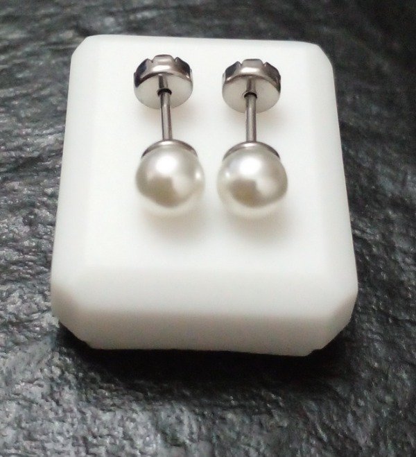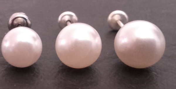 Acero quirúrgico con perla blancaPodes ver los tamaños en abajo del titulo.