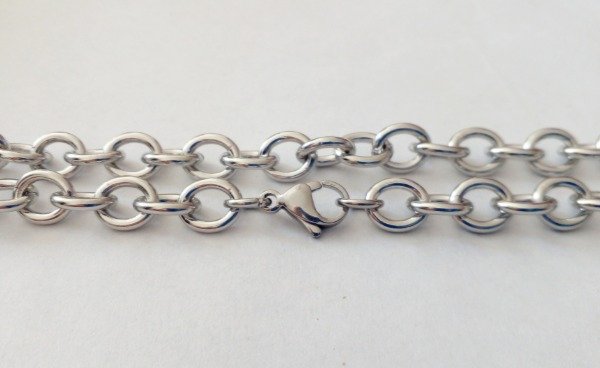 Cadena acero quirúrgico hipoalergenico. No cambia de color.