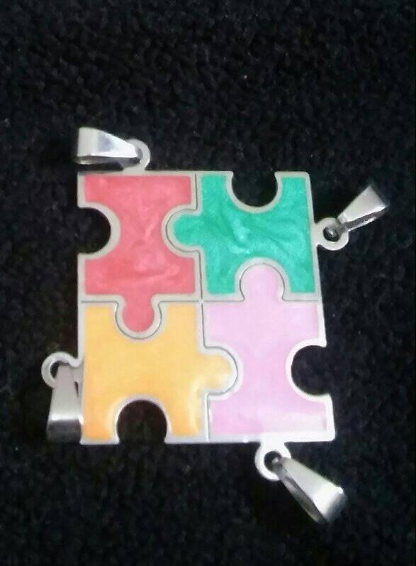 Acero quirúrgico con esmaltado. para compartir de 4. El precio es por dije completo los 4 pedazos.