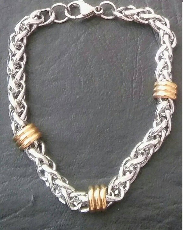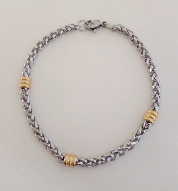 Acero quirurgico con apliques en acero dorado. 20cm de largo