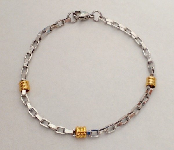 Pulsera acero quirúrgico hipoalergenico. No cambia de color.